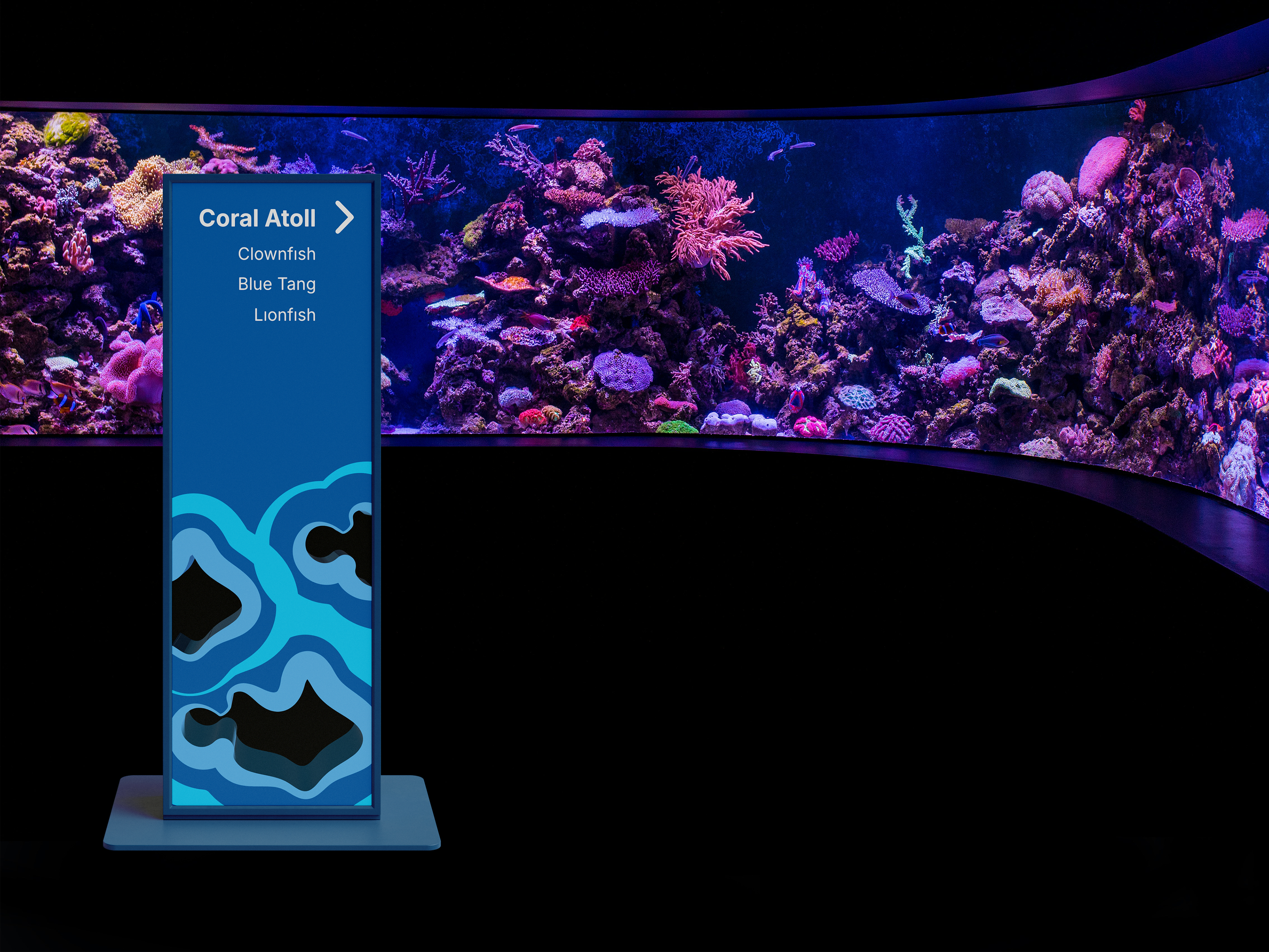 The rebrand features a dynamic brandmark inspired by water movement and coral shapes, symbolising the Aquarium’s conservation mission and the vibrant marine world. Flowing lines capture ocean fluidity, while a cool blue and green palette reinforces this connection, creating a cohesive identity that invites audiences to explore and protect marine life.